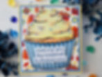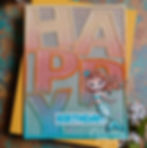 I die cut a second Happy cover die panel from Brutus Monroe's white "Not Your Mama's 130lb Cardstock" to add some dimension to the ink blended/Resist Spray coated outline and I also stamped the BIRTHDAY! sentiment from the same Simon Says Stamp "Happy" stamp set that coordinates with the cover die onto a scrap piece of the Brutus Monroe"Not Your Mama's 130lb Cardstock" using Gina K Designs "Blue Lagoon" ink and simply trimmed it to size using a paper trimmer.